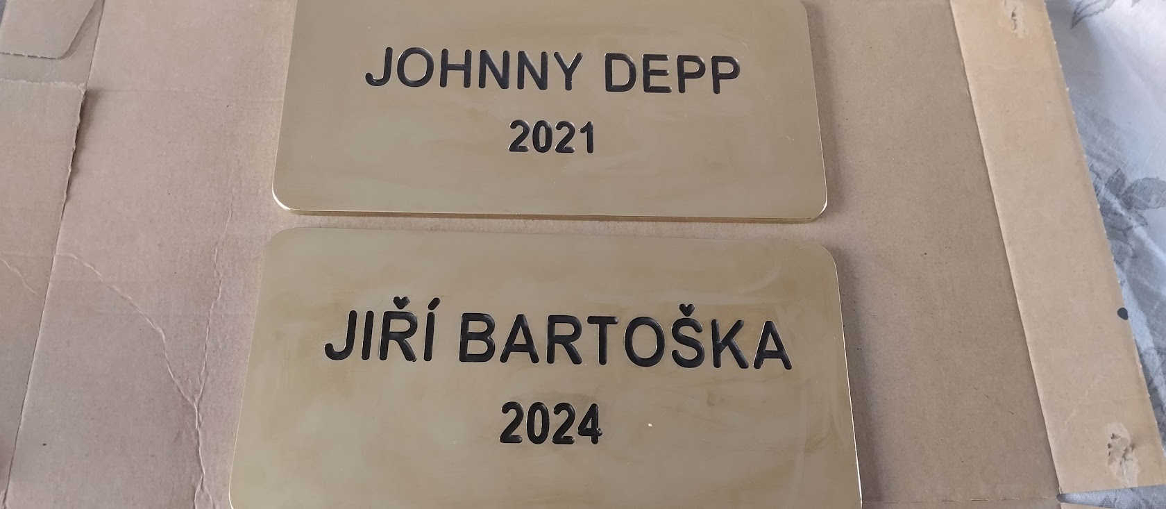 Plnění písma mosazných cedulek pro hotel Pupp Karlovy Vary